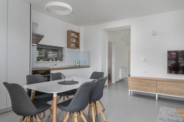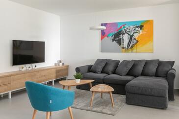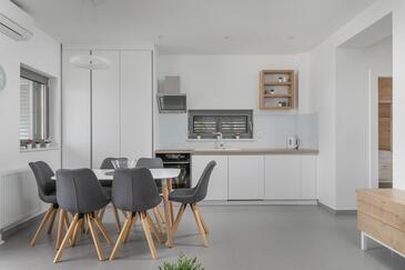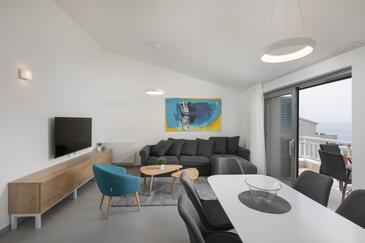 Appartamento può accogliere 6 ospiti. I letti sono disposti nelle camere da letto che sono 2, e nella camera di soggiorno, su 55m2. Gli ospiti hanno a disposizione il proprio terrazzo per godere nelle calde serate estive. Dall'appartamento si gode di una vista sul mare. Si può preparare il cibo utilizzando il barbecue comune. Durante il soggiorno gli ospiti possono utilizzare la piscina comune. Nell'unità di alloggio si possono portare gli animali domestici con un pagamento supplementare.