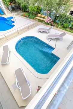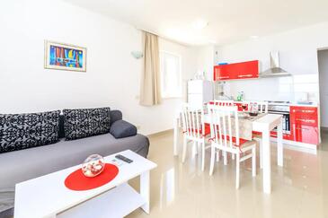 Appartamento può accogliere 4 ospiti. I letti sono disposti nelle camere da letto che sono 2, su 50m2. Gli ospiti hanno a disposizione il proprio terrazzo per godere nelle calde serate estive. Dall'appartamento si gode di una vista sul mare. Durante il soggiorno gli ospiti possono utilizzare la piscina comune.