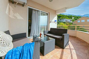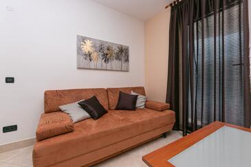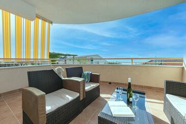 Appartamento può accogliere 4 ospiti. I letti sono disposti nelle camere da letto che sono 2, su 50m2. Gli ospiti hanno a disposizione il proprio terrazzo per godere nelle calde serate estive. Dall'appartamento si gode di una vista sul mare. Si può preparare il cibo utilizzando il barbecue comune. Durante il soggiorno gli ospiti possono utilizzare la piscina comune. Nell'unità di alloggio si possono portare gli animali domestici con un pagamento supplementare.