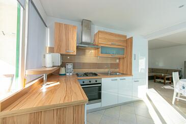 Appartamento può accogliere 6 ospiti. I letti sono disposti nelle camere da letto che sono 2, e nella camera di soggiorno, su 68m2. Gli ospiti hanno a disposizione il proprio terrazzo per godere nelle calde serate estive. Dall'appartamento si gode di una vista sul mare. Per il piacere totale e il relax c'è il barbecue privato solo per gli ospiti di quest'alloggio.
