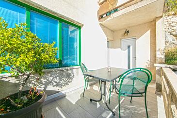 Appartamento può accogliere 6 ospiti. I letti sono disposti nelle camere da letto che sono 2, e nella camera di soggiorno, su 68m2. Gli ospiti hanno a disposizione il proprio terrazzo per godere nelle calde serate estive. Dall'appartamento si gode di una vista sul mare. Per il piacere totale e il relax c'è il barbecue privato solo per gli ospiti di quest'alloggio.