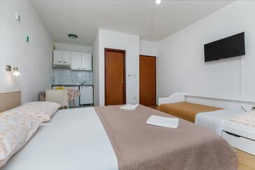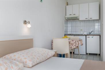 Appartamento può accogliere 6 ospiti. I letti sono disposti nelle camere da letto che sono 2, su 43m2. Gli ospiti hanno a disposizione il proprio balcone per godere delle calde serate estive. Dall'appartamento si gode di una vista sul mare. Si può preparare il cibo utilizzando il barbecue comune.