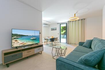 Appartamento può accogliere 2 ospiti. I letti sono disposti nelle camere da letto che sono 1, su 49m2. Gli ospiti hanno a disposizione il proprio terrazzo per godere nelle calde serate estive. Dall'appartamento si gode di una vista sul mare.