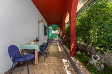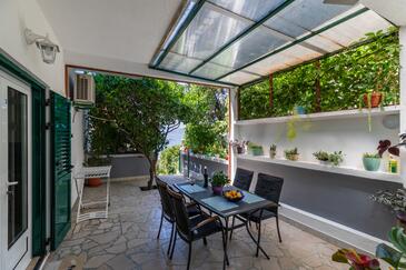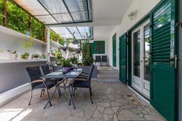 Appartamento può accogliere 4 ospiti. I letti sono disposti nelle camere da letto che sono 2, su 43m2. Gli ospiti hanno a disposizione il proprio terrazzo per godere nelle calde serate estive. Dall'appartamento si gode di una vista sul mare. Si può preparare il cibo utilizzando il barbecue comune.