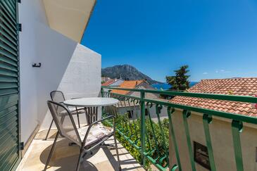 Appartamento può accogliere 4 ospiti. I letti sono disposti nelle camere da letto che sono 2, su 43m2. Gli ospiti hanno a disposizione il proprio terrazzo per godere nelle calde serate estive. Dall'appartamento si gode di una vista sul mare. Si può preparare il cibo utilizzando il barbecue comune.