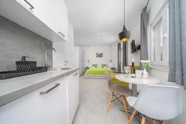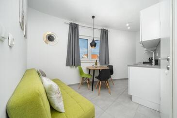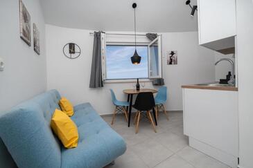 Appartamento può accogliere 2 ospiti. I letti sono disposti nelle camere da letto che sono 1, su 22m2. Gli ospiti hanno a disposizione il proprio balcone per godere delle calde serate estive. Dall'appartamento si gode di una vista sul mare.