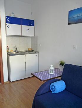 Appartamento può accogliere 4 ospiti. I letti sono disposti nelle camere da letto che sono 1, e nella camera di soggiorno, su 38m2. Gli ospiti hanno a disposizione il proprio balcone per godere delle calde serate estive. Dall'appartamento si gode di una vista sul mare.