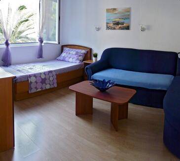 Appartamento può accogliere 4 ospiti. I letti sono disposti nelle camere da letto che sono 1, e nella camera di soggiorno, su 38m2. Gli ospiti hanno a disposizione il proprio balcone per godere delle calde serate estive. Dall'appartamento si gode di una vista sul mare.