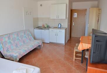 Appartamento può accogliere 4 ospiti. I letti sono disposti nelle camere da letto che sono 1, e nella camera di soggiorno, su 27m2. Gli ospiti hanno a disposizione il proprio balcone per godere delle calde serate estive. Dall'appartamento si gode di una vista sul mare. Si può preparare il cibo utilizzando il barbecue comune.