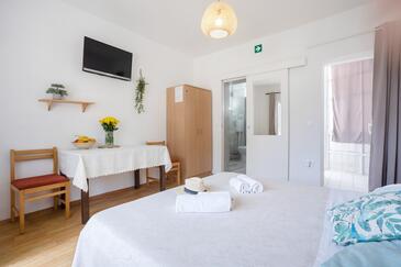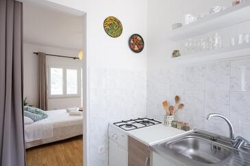 Appartamento può accogliere 6 ospiti. I letti sono disposti nelle camere da letto che sono 3, su 70m2. Gli ospiti hanno a disposizione il proprio terrazzo per godere nelle calde serate estive. Dall'appartamento si gode di una vista sul mare. Per il piacere totale e il relax c'è il barbecue privato solo per gli ospiti di quest'alloggio. Nell'unità di alloggio si possono portare gli animali domestici senza alcun pagamento supplementare.