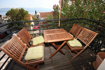 Appartamento può accogliere 6 ospiti. I letti sono disposti nelle camere da letto che sono 2, e nella sala da pranzo, su 41m2. Gli ospiti hanno a disposizione il proprio balcone per godere delle calde serate estive. Dall'appartamento si gode di una vista sul mare. Nell'unità di alloggio si possono portare gli animali domestici con un pagamento supplementare.