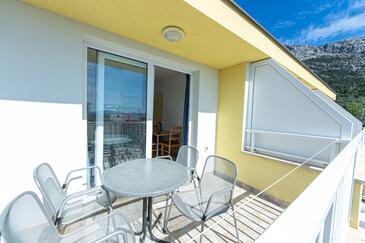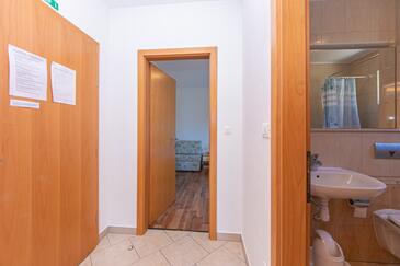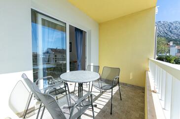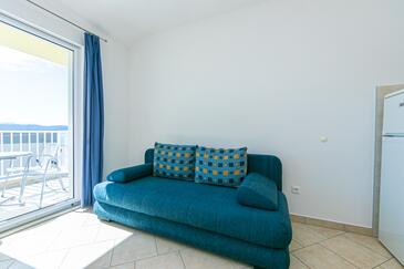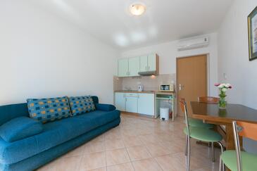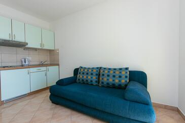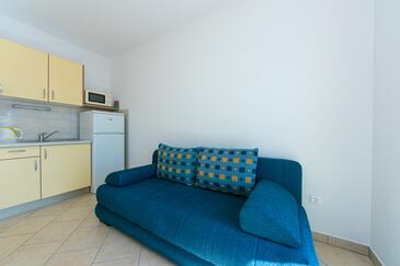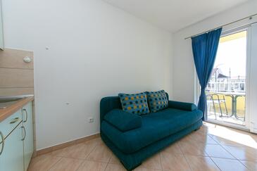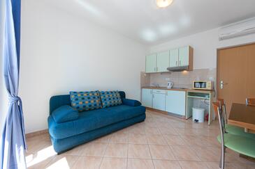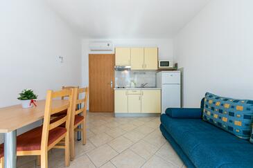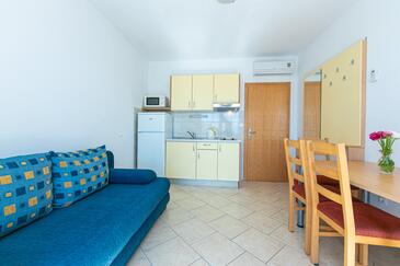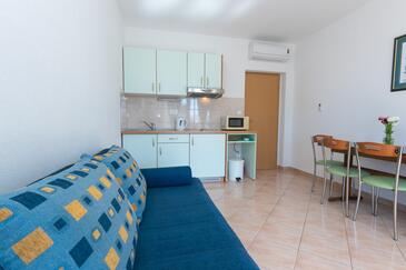 Appartamento può accogliere 5 ospiti. I letti sono disposti nelle camere da letto che sono 1, e nella camera di soggiorno, su 30m2. Gli ospiti hanno a disposizione il proprio balcone per godere delle calde serate estive. Dall'appartamento si gode di una vista sul mare. Si può preparare il cibo utilizzando il barbecue comune.