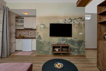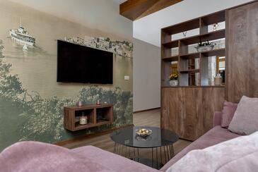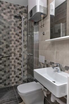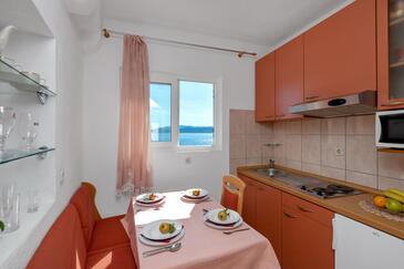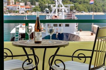Appartamento può accogliere 6 ospiti. I letti sono disposti nelle camere da letto che sono 3, su 53m2. Gli ospiti hanno a disposizione il proprio balcone per godere delle calde serate estive. Dall'appartamento si gode di una vista sul mare. Si può preparare il cibo utilizzando il barbecue comune. Le stanze dell'unità d'alloggio non sono connesse in un insieme. L'unità d'alloggio ha delle stanze separate dal resto dell'unità. Arrivati nell'unità d'alloggio i clienti devono pagare un deposito (il prezzo è indicato sul sito).