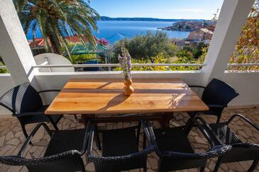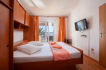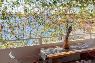 Appartamento può accogliere 4 ospiti. I letti sono disposti nelle camere da letto che sono 2, su 33m2. Gli ospiti hanno a disposizione il proprio terrazzo per godere nelle calde serate estive. Dall'appartamento si gode di una vista sul mare.