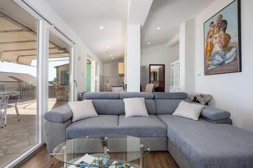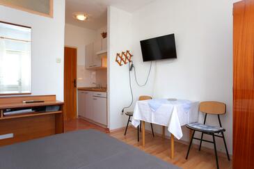 Appartamento può accogliere 4 ospiti. I letti sono disposti nelle camere da letto che sono 2, su 56m2. Gli ospiti hanno a disposizione il proprio terrazzo per godere nelle calde serate estive. Dall'appartamento si gode di una vista sul mare. Si può preparare il cibo utilizzando il barbecue comune. Nell'unità di alloggio si possono portare gli animali domestici con un pagamento supplementare.