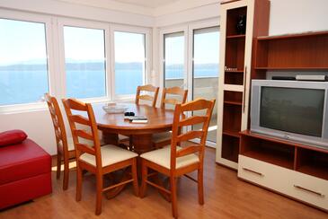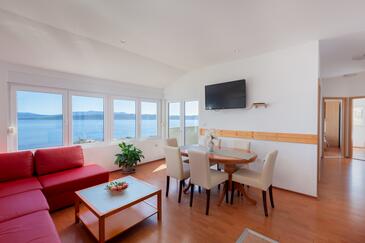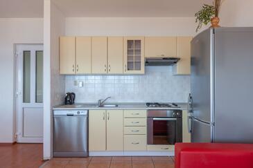 Appartamento può accogliere 6 ospiti. I letti sono disposti nelle camere da letto che sono 3, su 60m2. Gli ospiti hanno a disposizione il proprio terrazzo per godere nelle calde serate estive. Dall'appartamento si gode di una vista sul mare. Si può preparare il cibo utilizzando il barbecue comune.