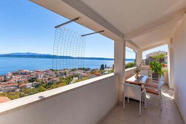 Appartamento può accogliere 6 ospiti. I letti sono disposti nelle camere da letto che sono 3, su 60m2. Gli ospiti hanno a disposizione il proprio terrazzo per godere nelle calde serate estive. Dall'appartamento si gode di una vista sul mare. Si può preparare il cibo utilizzando il barbecue comune.