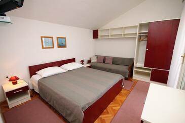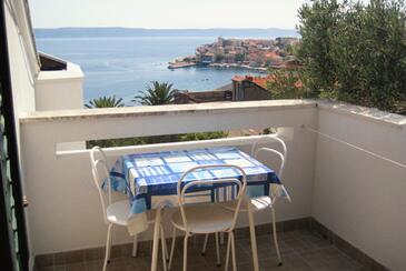 Appartamento può accogliere 6 ospiti. I letti sono disposti nelle camere da letto che sono 2, su 44m2. Gli ospiti hanno a disposizione il proprio terrazzo per godere nelle calde serate estive. Dall'appartamento si gode di una vista sul mare. Si può preparare il cibo utilizzando il barbecue comune.