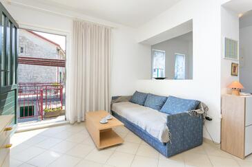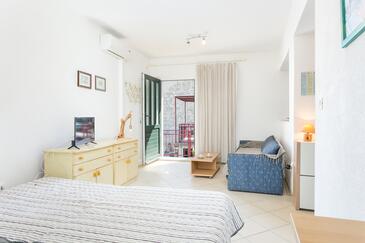 Monolocale può accogliere 4 ospiti. I letti sono disposti nelle camere da letto che sono 1, e nella camera di soggiorno e nella sala da pranzo, su 26m2. Gli ospiti hanno a disposizione il proprio terrazzo per godere nelle calde serate estive. Dal monolocale si gode di una vista sul mare. Si può preparare il cibo utilizzando il barbecue comune. Nell'unità di alloggio si possono portare gli animali domestici con un pagamento supplementare. L'unità d'alloggio ha delle stanze separate dal resto dell'unità.