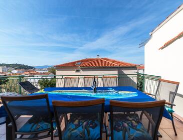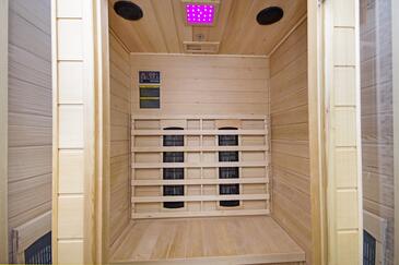 Appartamento può accogliere 6 ospiti. I letti sono disposti nelle camere da letto che sono 3, su 70m2. Gli ospiti hanno a disposizione il proprio terrazzo per godere nelle calde serate estive. Dall'appartamento si gode di una vista sul mare. Si può preparare il cibo utilizzando il barbecue comune. Nell'unità di alloggio si possono portare gli animali domestici senza alcun pagamento supplementare.