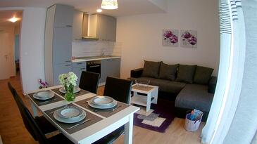 Appartamento può accogliere 4 ospiti. I letti sono disposti nelle camere da letto che sono 1, e nella camera di soggiorno, su 45m2. Gli ospiti hanno a disposizione il proprio balcone per godere delle calde serate estive. Dall'appartamento si gode di una vista sul mare. Si può preparare il cibo utilizzando il barbecue comune.