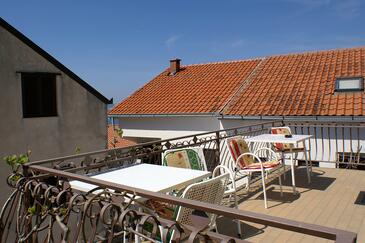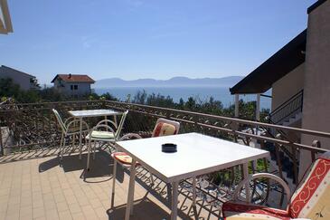 Appartamento può accogliere 6 ospiti. I letti sono disposti nelle camere da letto che sono 3, su 54m2. Gli ospiti hanno a disposizione il proprio terrazzo per godere nelle calde serate estive. Dall'appartamento si gode di una vista sul mare. Si può preparare il cibo utilizzando il barbecue comune.