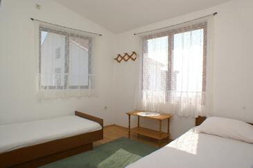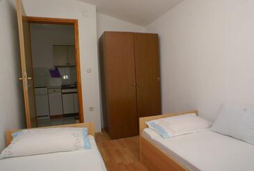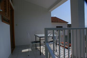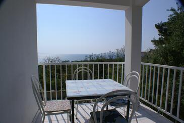 Appartamento può accogliere 4 ospiti. I letti sono disposti nelle camere da letto che sono 2, su 24m2. Gli ospiti hanno a disposizione il proprio terrazzo per godere nelle calde serate estive. Dall'appartamento si gode di una vista sul mare.