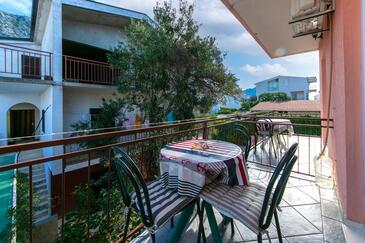 Appartamento può accogliere 7 ospiti. I letti sono disposti nelle camere da letto che sono 2, e nella camera di soggiorno, su 56m2. Gli ospiti hanno a disposizione il proprio balcone per godere delle calde serate estive. Si può preparare il cibo utilizzando il barbecue comune.