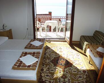 Appartamento può accogliere 6 ospiti. I letti sono disposti nelle camere da letto che sono 3, su 61m2. Gli ospiti hanno a disposizione il proprio terrazzo per godere nelle calde serate estive. Dall'appartamento si gode di una vista sul mare. Si può preparare il cibo utilizzando il barbecue comune.