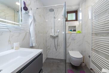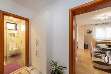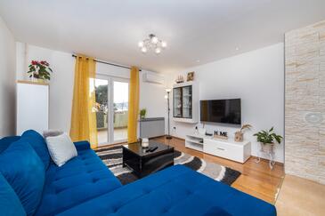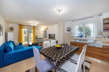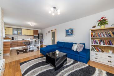 Appartamento può accogliere 6 ospiti. I letti sono disposti nelle camere da letto che sono 2, e nella camera di soggiorno, su 70m2. Gli ospiti hanno a disposizione il proprio terrazzo per godere nelle calde serate estive. Dall'appartamento si gode di una vista sul mare. Si può preparare il cibo utilizzando il barbecue comune.