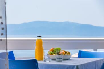 Appartamento può accogliere 4 ospiti. I letti sono disposti nelle camere da letto che sono 1, e nella sala da pranzo, su 48m2. Gli ospiti hanno a disposizione il proprio terrazzo per godere nelle calde serate estive. Dall'appartamento si gode di una vista sul mare.
