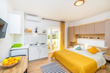 Appartamento può accogliere 4 ospiti. I letti sono disposti nelle camere da letto che sono 1, e nella camera di soggiorno, su 31m2. Gli ospiti hanno a disposizione il proprio balcone per godere delle calde serate estive. Dall'appartamento si gode di una vista sul mare. Si può preparare il cibo utilizzando il barbecue comune.