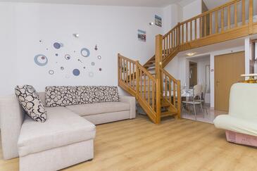 Appartamento può accogliere 3 ospiti. I letti sono disposti nelle camere da letto che sono 2, su 32m2. Gli ospiti hanno a disposizione il proprio balcone per godere delle calde serate estive. Dall'appartamento si gode di una vista sul mare. Si può preparare il cibo utilizzando il barbecue comune.