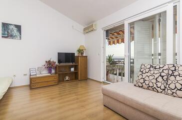 Appartamento può accogliere 3 ospiti. I letti sono disposti nelle camere da letto che sono 2, su 32m2. Gli ospiti hanno a disposizione il proprio balcone per godere delle calde serate estive. Dall'appartamento si gode di una vista sul mare. Si può preparare il cibo utilizzando il barbecue comune.