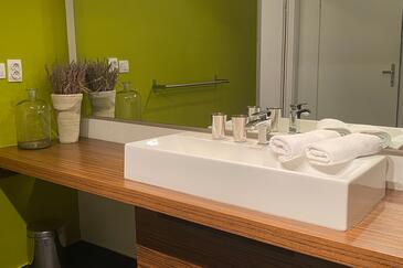 Casa può accogliere 6 ospiti. I letti sono disposti nelle camere da letto che sono 3, su 101m2. Gli ospiti hanno a disposizione il proprio terrazzo per godere nelle calde serate estive. Dalla casa si gode di una vista sul mare. Per il piacere totale e il relax c'è il barbecue privato solo per gli ospiti di quest'alloggio. Durante il soggiorno gli ospiti si possono rilassare nella piscina privata. Nell'unità di alloggio si possono portare gli animali domestici senza alcun pagamento supplementare.
