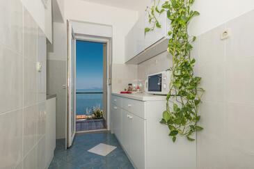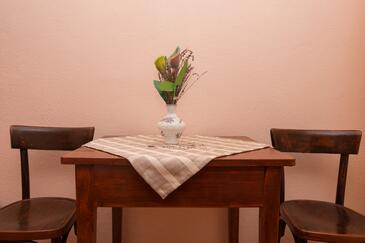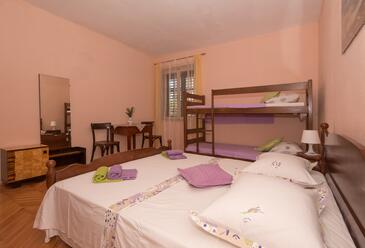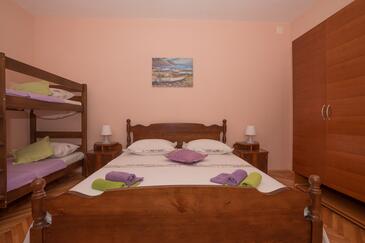 Appartamento può accogliere 9 ospiti. I letti sono disposti nelle camere da letto che sono 3, su 84m2. Gli ospiti hanno a disposizione il proprio terrazzo per godere nelle calde serate estive. Dall'appartamento si gode di una vista sul mare. Per il piacere totale e il relax c'è il barbecue privato solo per gli ospiti di quest'alloggio. Nell'unità di alloggio si possono portare gli animali domestici con un pagamento supplementare. Le stanze dell'unità d'alloggio non sono connesse in un insieme. L'unità d'alloggio ha delle stanze separate dal resto dell'unità.