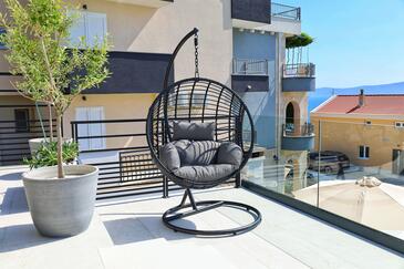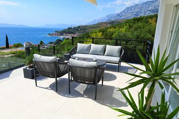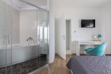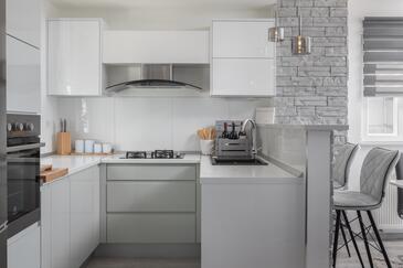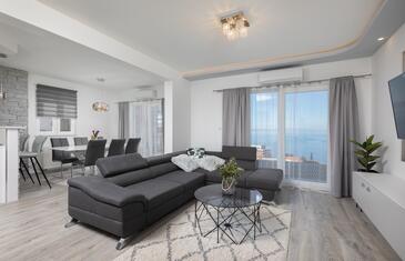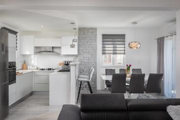 Casa può accogliere 6 ospiti. I letti sono disposti nelle camere da letto che sono 2, e nella camera di soggiorno, su 100m2. Gli ospiti hanno a disposizione il proprio terrazzo per godere nelle calde serate estive. Dalla casa si gode di una vista sul mare. Per il piacere totale e il relax c'è il barbecue privato solo per gli ospiti di quest'alloggio. Durante il soggiorno gli ospiti si possono rilassare nella piscina privata. Nell'unità di alloggio si possono portare gli animali domestici con un pagamento supplementare.