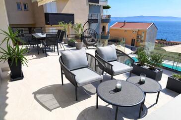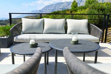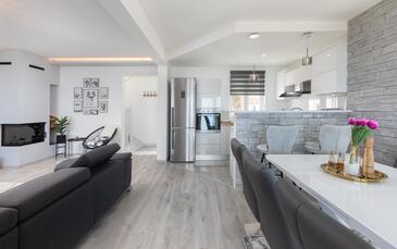 Casa può accogliere 6 ospiti. I letti sono disposti nelle camere da letto che sono 2, e nella camera di soggiorno, su 100m2. Gli ospiti hanno a disposizione il proprio terrazzo per godere nelle calde serate estive. Dalla casa si gode di una vista sul mare. Per il piacere totale e il relax c'è il barbecue privato solo per gli ospiti di quest'alloggio. Durante il soggiorno gli ospiti si possono rilassare nella piscina privata. Nell'unità di alloggio si possono portare gli animali domestici con un pagamento supplementare.
