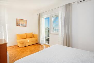 Appartamento può accogliere 6 ospiti. I letti sono disposti nelle camere da letto che sono 2, e nella camera di soggiorno, su 55m2. Gli ospiti hanno a disposizione il proprio balcone per godere delle calde serate estive. Dall'appartamento si gode di una vista sul mare.