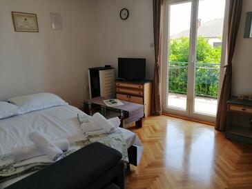 Appartamento può accogliere 4 ospiti. I letti sono disposti nelle camere da letto che sono 2, su 48m2. Gli ospiti hanno a disposizione il proprio terrazzo per godere nelle calde serate estive. Dall'appartamento si gode di una vista sul mare.