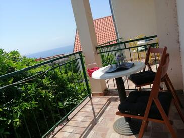 Appartamento può accogliere 4 ospiti. I letti sono disposti nelle camere da letto che sono 2, su 48m2. Gli ospiti hanno a disposizione il proprio terrazzo per godere nelle calde serate estive. Dall'appartamento si gode di una vista sul mare.