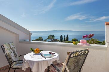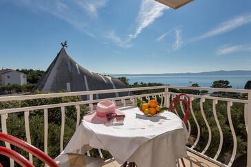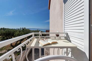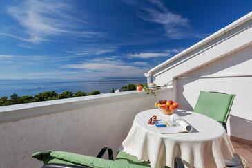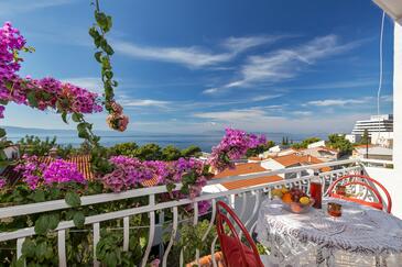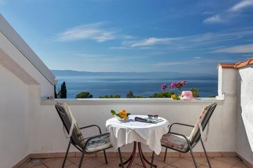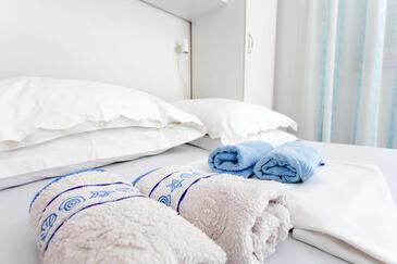 Appartamento può accogliere 5 ospiti. I letti sono disposti nelle camere da letto che sono 2, su 42m2. Gli ospiti hanno a disposizione il proprio balcone per godere delle calde serate estive. Dall'appartamento si gode di una vista sul mare.