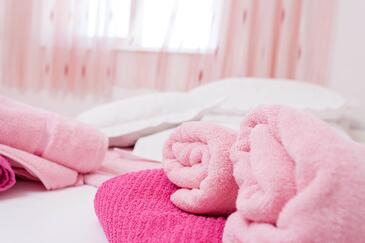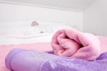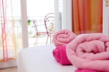 Appartamento può accogliere 5 ospiti. I letti sono disposti nelle camere da letto che sono 2, su 42m2. Gli ospiti hanno a disposizione il proprio balcone per godere delle calde serate estive. Dall'appartamento si gode di una vista sul mare.