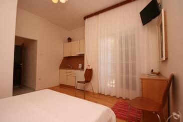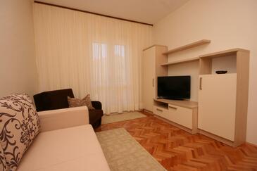 Appartamento può accogliere 8 ospiti. I letti sono disposti nelle camere da letto che sono 3, e nella camera di soggiorno, su 79m2. Gli ospiti hanno a disposizione il proprio terrazzo per godere nelle calde serate estive. Dall'appartamento si gode di una vista sul mare.