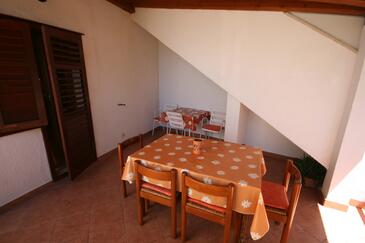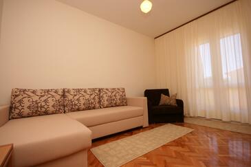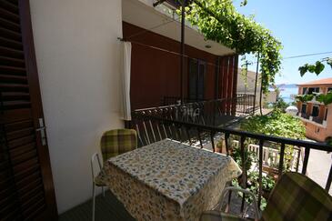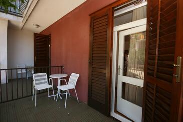 Appartamento può accogliere 8 ospiti. I letti sono disposti nelle camere da letto che sono 3, e nella camera di soggiorno, su 79m2. Gli ospiti hanno a disposizione il proprio terrazzo per godere nelle calde serate estive. Dall'appartamento si gode di una vista sul mare.