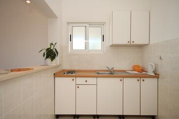 Appartamento può accogliere 6 ospiti. I letti sono disposti nelle camere da letto che sono 2, e nella camera di soggiorno, su 68m2. Gli ospiti hanno a disposizione il proprio terrazzo per godere nelle calde serate estive. Dall'appartamento si gode di una vista sul mare. Si può preparare il cibo utilizzando il barbecue comune.