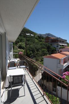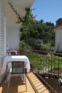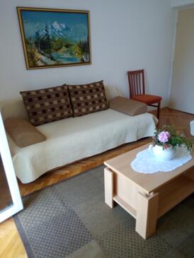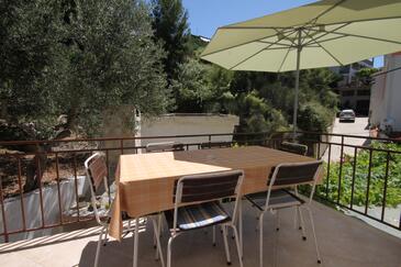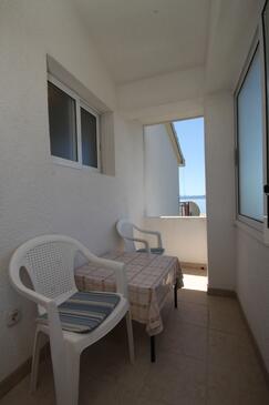 Appartamento può accogliere 6 ospiti. I letti sono disposti nelle camere da letto che sono 2, e nella camera di soggiorno, su 68m2. Gli ospiti hanno a disposizione il proprio terrazzo per godere nelle calde serate estive. Dall'appartamento si gode di una vista sul mare. Si può preparare il cibo utilizzando il barbecue comune.