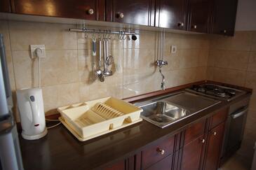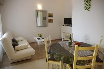 Appartamento può accogliere 4 ospiti. I letti sono disposti nelle camere da letto che sono 2, su 46m2. Gli ospiti hanno a disposizione il proprio terrazzo per godere nelle calde serate estive. Dall'appartamento si gode di una vista sul mare. Si può preparare il cibo utilizzando il barbecue comune.
