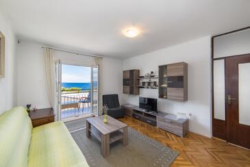 Appartamento può accogliere 6 ospiti. I letti sono disposti nelle camere da letto che sono 3, su 79m2. Gli ospiti hanno a disposizione il proprio terrazzo per godere nelle calde serate estive. Dall'appartamento si gode di una vista sul mare.