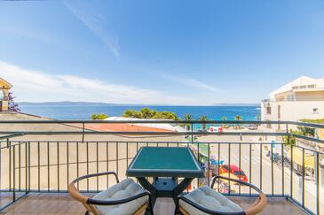 Appartamento può accogliere 6 ospiti. I letti sono disposti nelle camere da letto che sono 3, su 79m2. Gli ospiti hanno a disposizione il proprio terrazzo per godere nelle calde serate estive. Dall'appartamento si gode di una vista sul mare.
